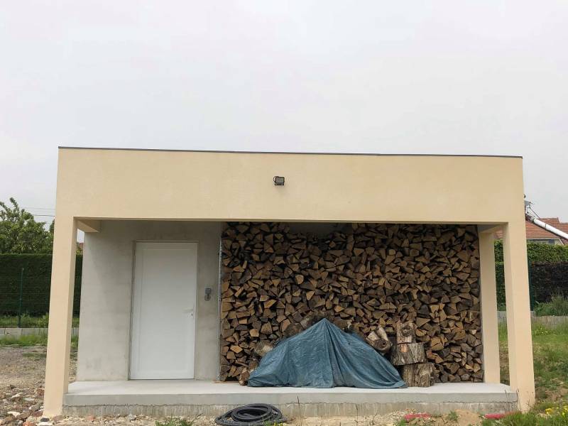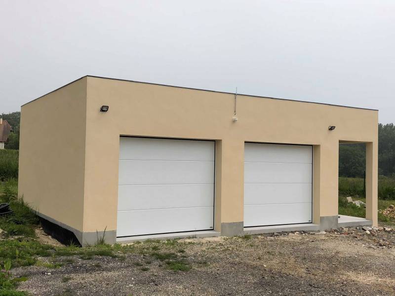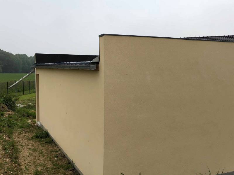 Non loin de Valmont, nous avons réaliser d'un double garage en agglos béton recouvert d'un enduit monocouche avec une couverture en tôle bac acier isolant.